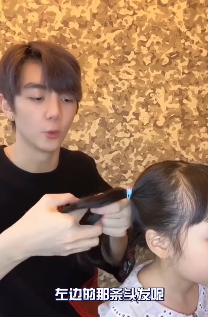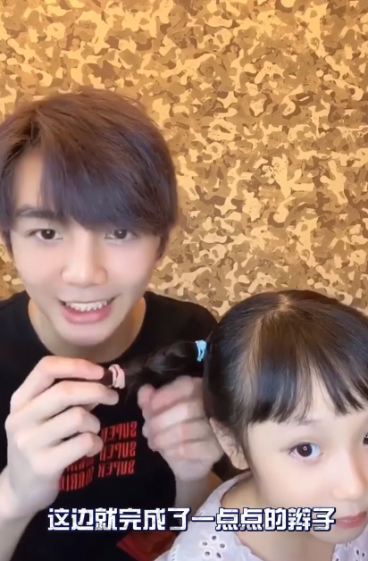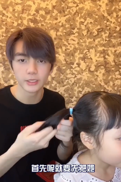 近日,洪欣儿子张镐濂帮妹妹扎头