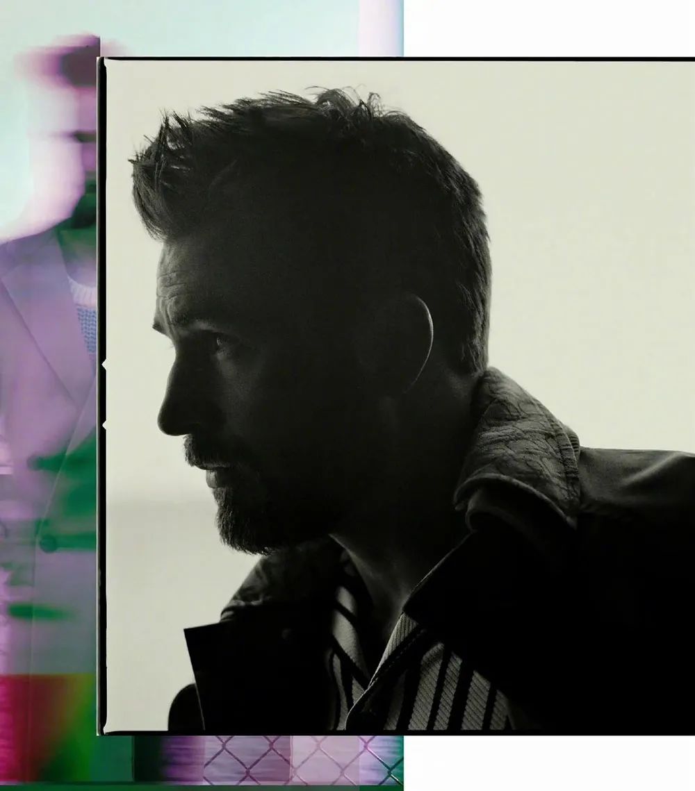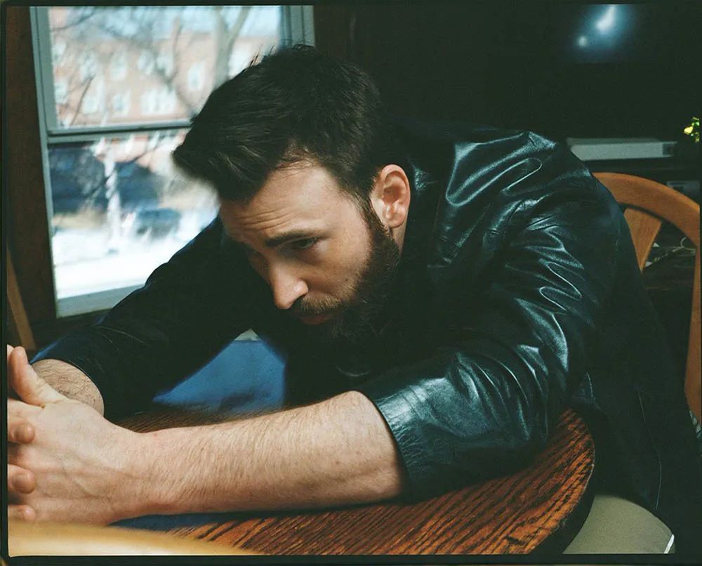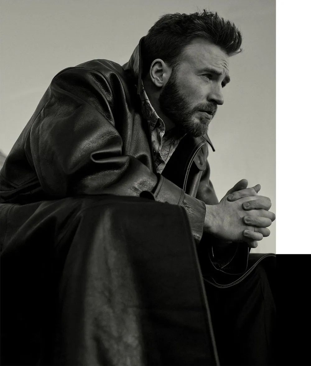 照片中的克里斯和米德多;埃文斯的胡子看起来几乎和他的新剧《保卫雅各布》中的一样。也就是说,他直立的脸能够经受住这组硬照片中的各种彩色皮革服装。
