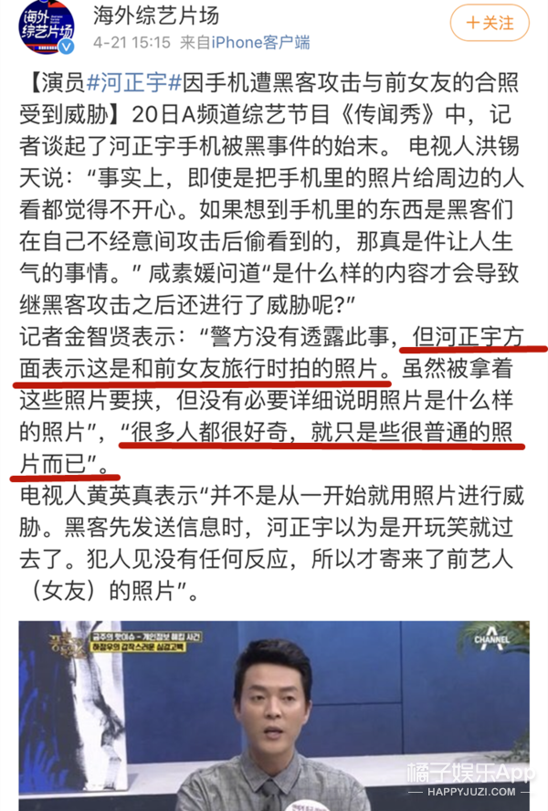 我所说的实际上是,几天前,哈正宇被黑客勒索,窃取了手机信息。