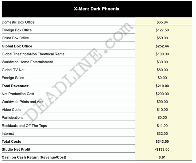 《x战警:黑凤凰》的拍摄成本高达2亿美元,而全球票房(2.52亿美元)是《x战警》系列中最低的,总损失为1.33亿美元。《x战警》系列的未来现在掌握在“漫威电影世界”的老板凯文·米德多手中。惠誉的手。