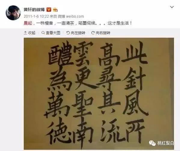 他写的每一个字和说的每一个字都在给你一个答案。早在2011年,黄轩偶尔会在微博上与网友分享他的书法实践。