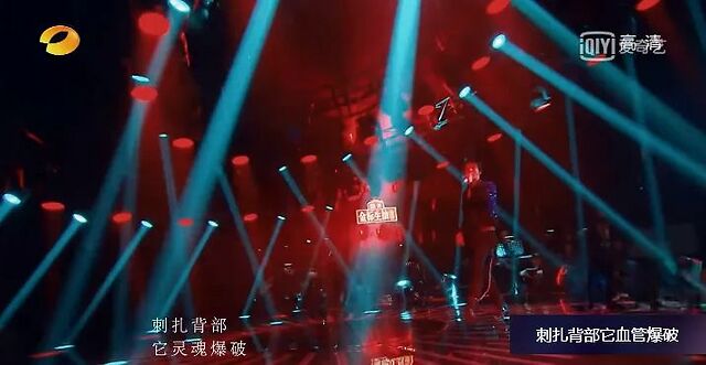 舞台上,华晨羽热情洋溢地演唱了《刺穿背部,刺破血管》。