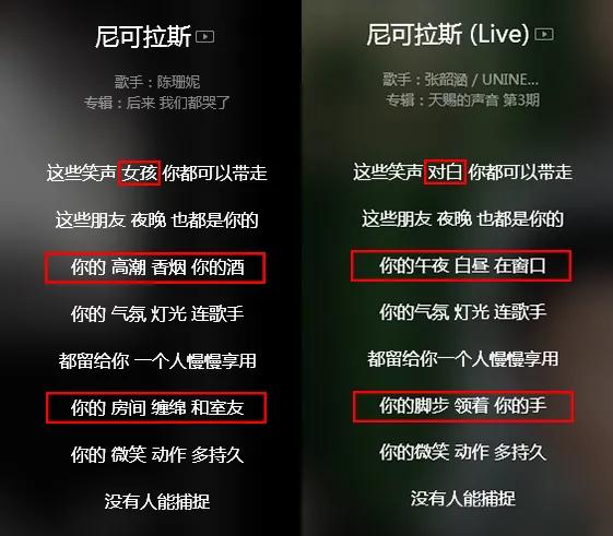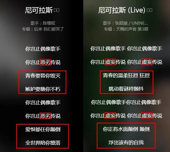 音乐APP的歌词应该编码,音乐综艺节目呈现的歌词更严格。