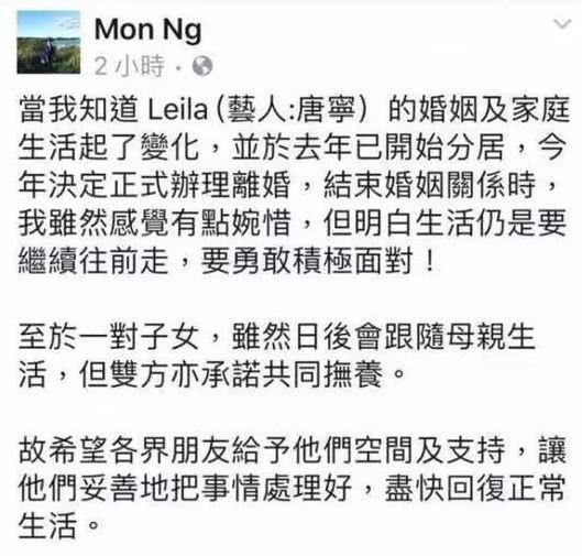 不过家庭美满的日子并不长,在二胎出生2年后,唐宁就被曝出离婚。在离婚后没多久,唐宁就被拍到有一位小鲜肉模特送她回家。不过该男子也只是送她回家,并没有后续发展了。