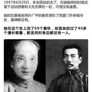 她日常生活的中心就是侍候鲁迅的母亲,也真应了鲁迅当年说的话:“是母亲娶媳妇。”与鲁迅相比,朱安更加不幸。