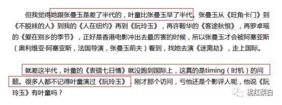 跟张曼玉同一时代,起点差不多,被划分为“红/不红”多少有点简单粗暴,叶童自己的看法是:这都是个人造化。