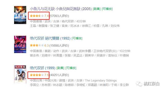 苏有朋&林志颖版《绝代双骄》,谢霆锋&张卫健版《小鱼儿与花无缺》,分数双双破7。