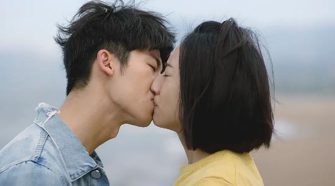 ▲黄雨萱和李子维甜蜜又痛苦的告别之吻。