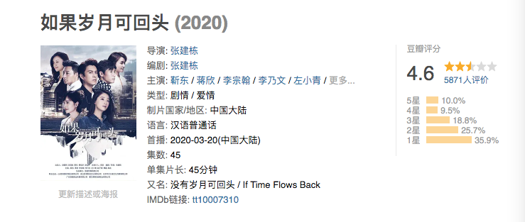 豆瓣评分,跌到4.6。