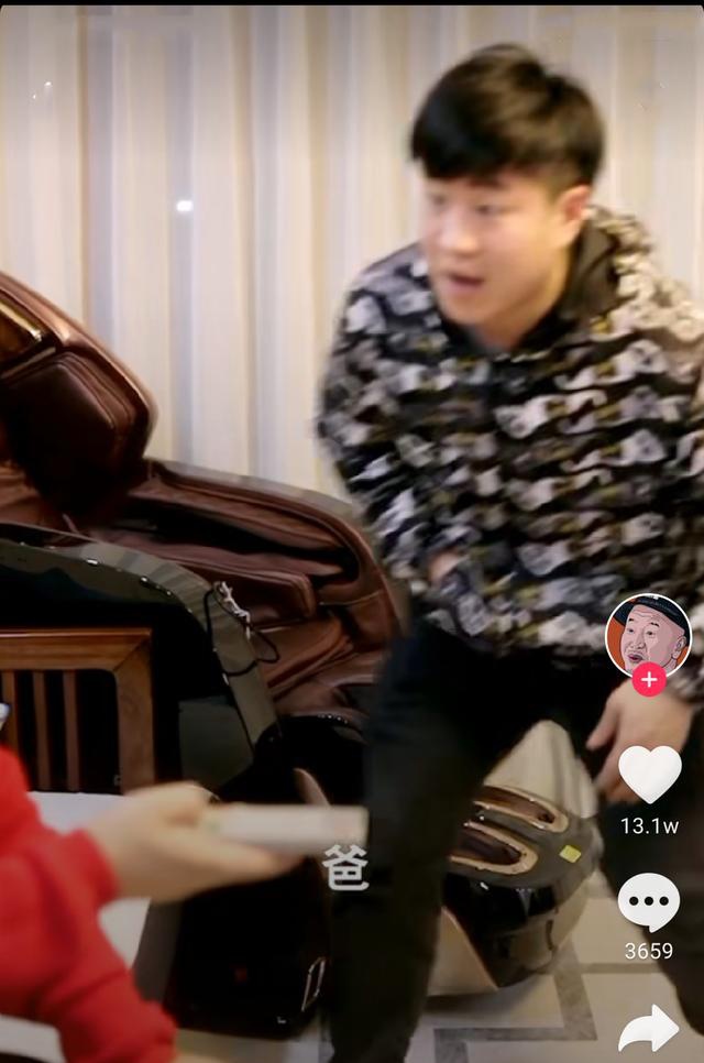 而从整个视频的比例大小来看,他的豪宅应是不小,巨大的按摩椅仅仅只占据了房间很小的一个角落,剩余的空间依然十分空旷,似乎可以肆无忌惮的走动、打闹。白色的大理石地板,看起来简洁又复古,给这个中式装修的豪宅带来了一些不一样的味道。