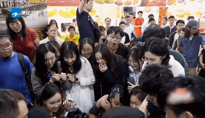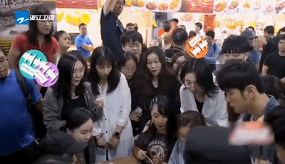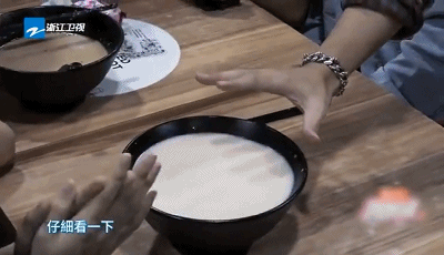 人来疯周杰伦技痒了。随意选中一位路人,对着她的面汤,对,又是biubiu发射电流的手势。面汤就沸腾起来了。