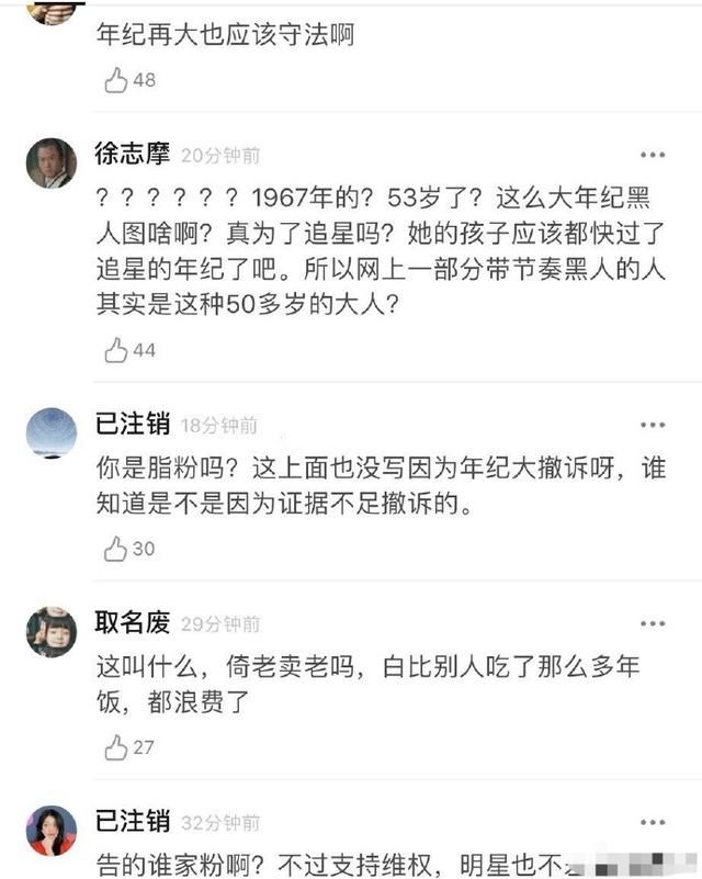 杨幂这次心慈手软,所以选择了撤诉也是有可能的,不过对于五十多岁依旧在网上做黑粉的情况引来不少争议,大家纷纷表示已经过了追星的年纪,难道是倚老卖老在网上无视法律被告上法庭吗?