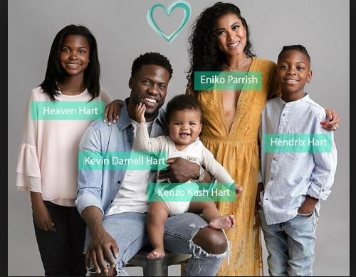现年40岁的凯文与前妻有两个孩子,分别是15岁的女儿希文·哈特(Heaven Hart)和12岁的儿子亨德里克斯·哈特(Hendrix Hart),他与现在的妻子艾妮科,2年前迎来了两人的第一个儿子Kenzo Kash Hart。