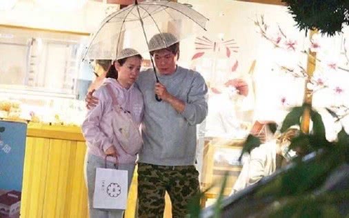 在离开面包店时,二人共同撑了一把雨伞,林明谦紧紧地护着女友不让被雨淋湿,曾宝仪也一只手拎着购物袋,另一只手搂着男友的腰,非常恩爱了。