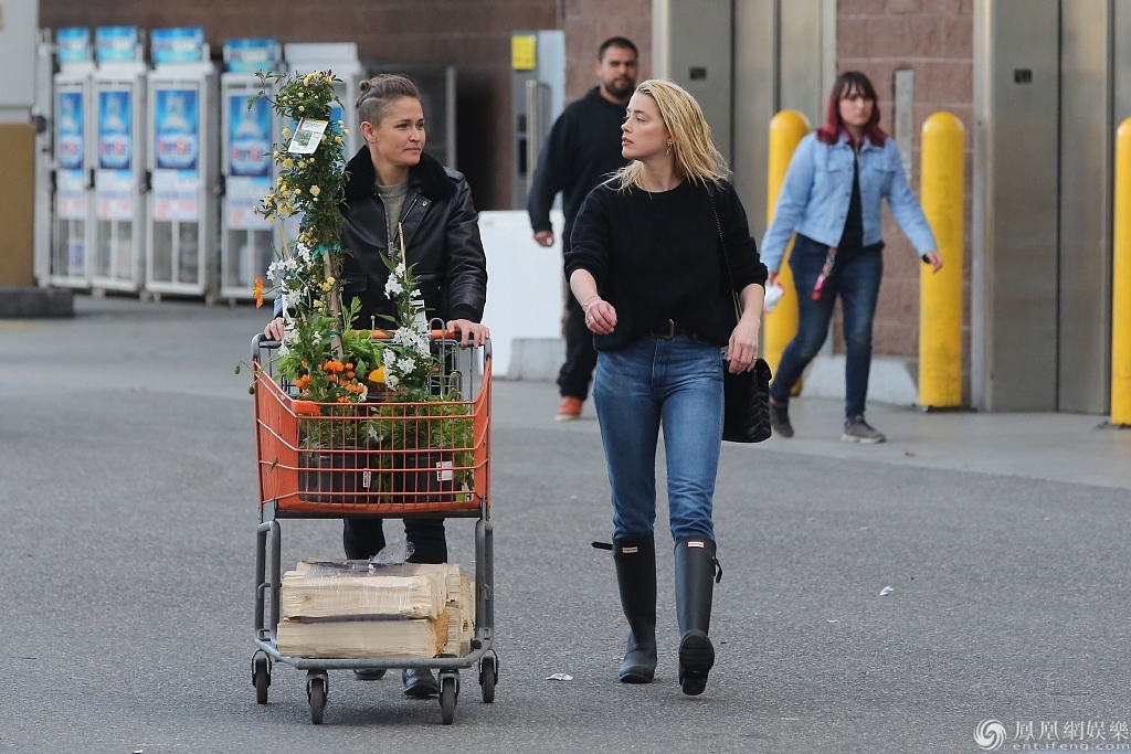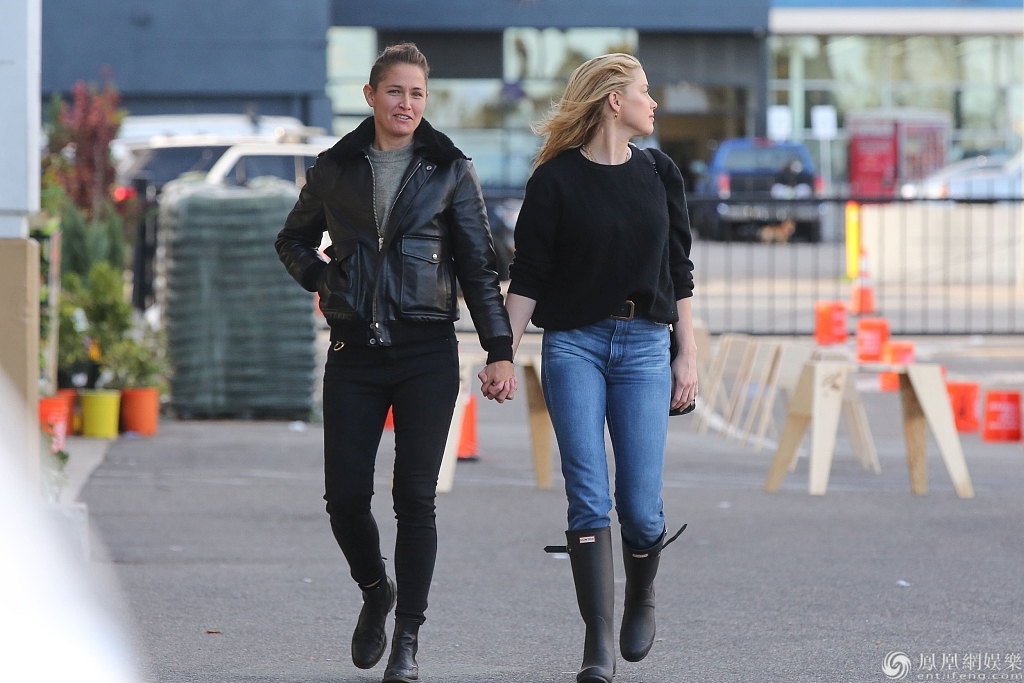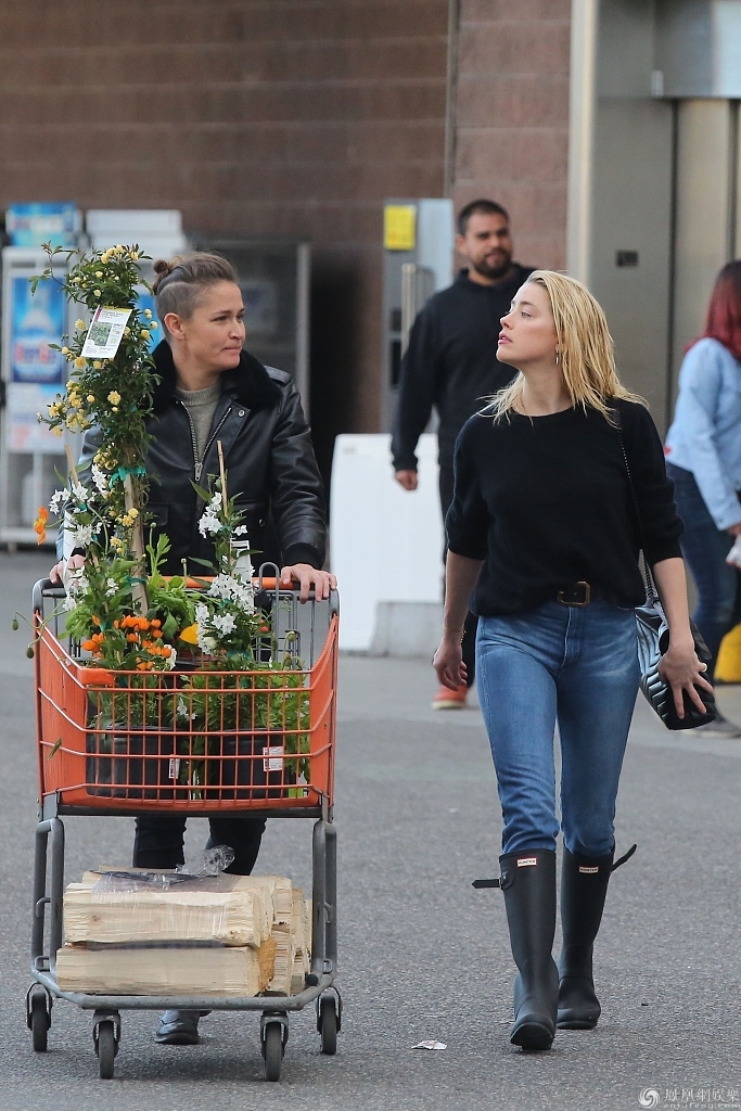 艾梅柏·希尔德背头造型踩长靴又美又飒,和女友牵手买花富有情调。