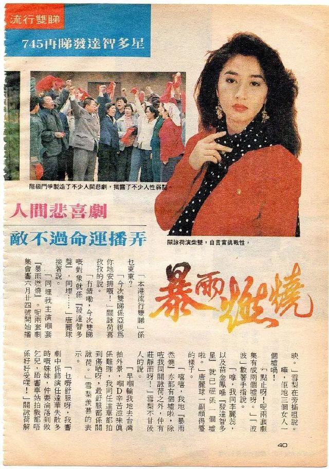 后来她和任达华搭档了《暴雨燃烧》,饰演一个精神分裂病人,演技也被观众和业界认可,坐实了亚视一姐的位置。