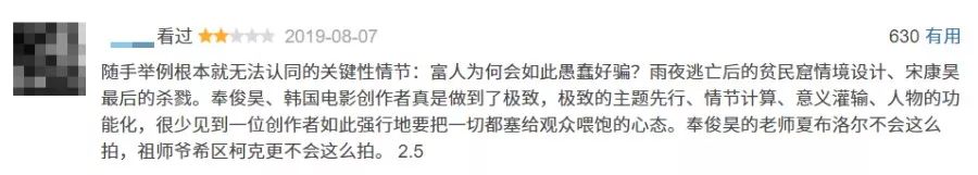 经过我的观察发现,认为《寄生虫》过誉的观众,基本都集中在对剧情设定的批评。