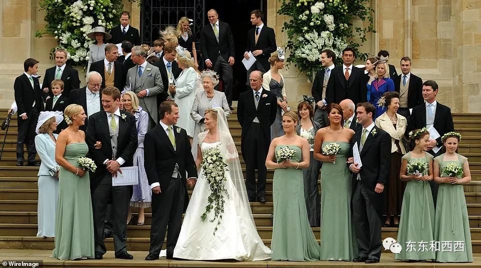 为了迎娶她,王室也十分上心。在温莎堡圣乔治大教堂举办婚礼,从女王到哈里高层统统出动。伴娘团也很豪华,有菲利普斯的妹妹扎拉↓↓