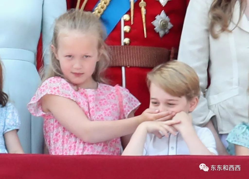 Savannah是乔治小王子的霸气表姐。 在女王官方生日巡游时,站在白金汉宫阳台上的乔治唱歌,一把捂住他嘴巴的就是她↓↓