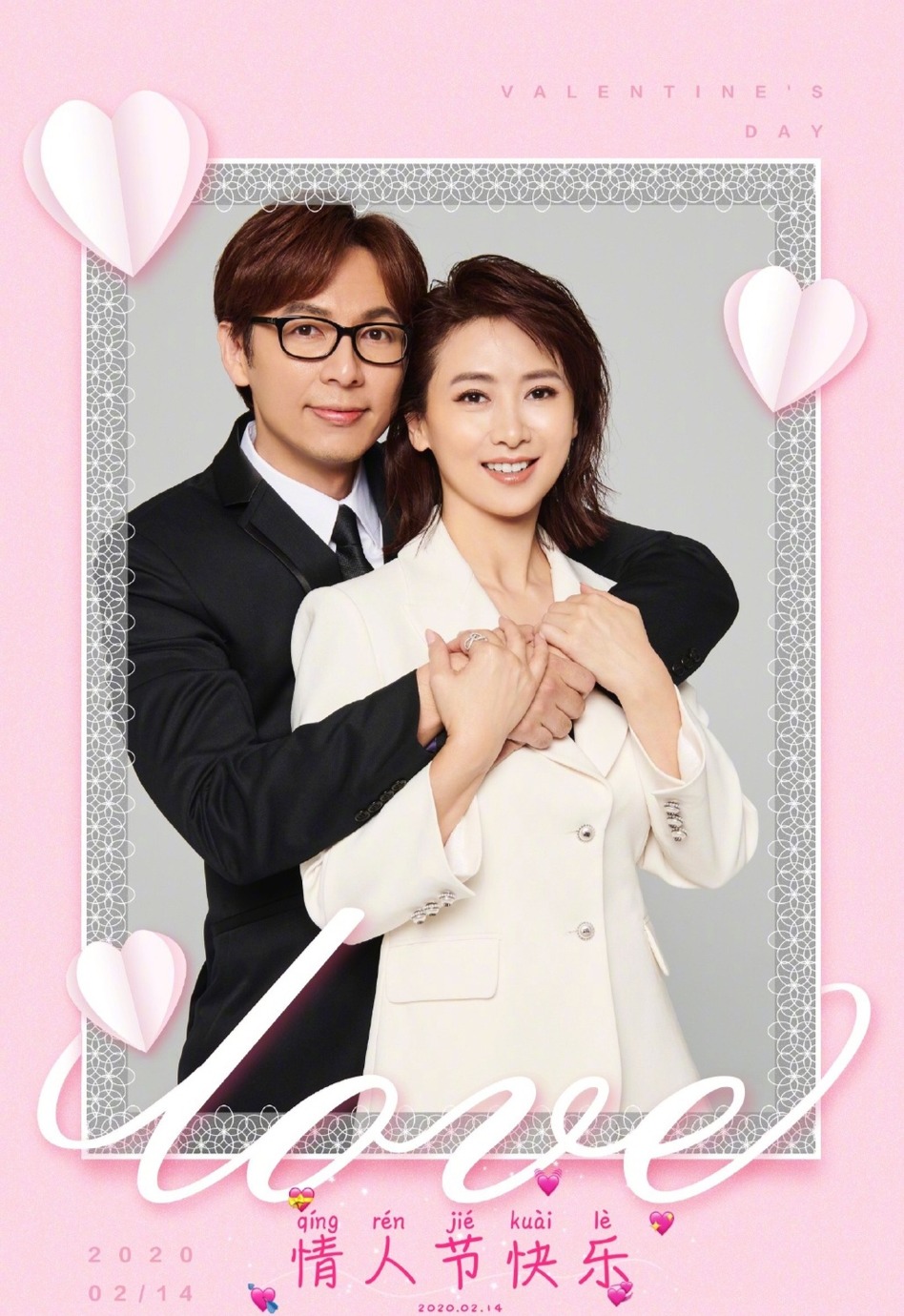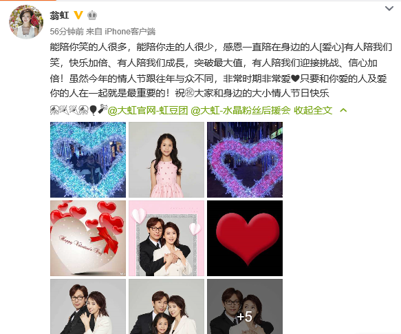 2月14日情人节,51岁的翁虹晒出一组全家福照片庆情人