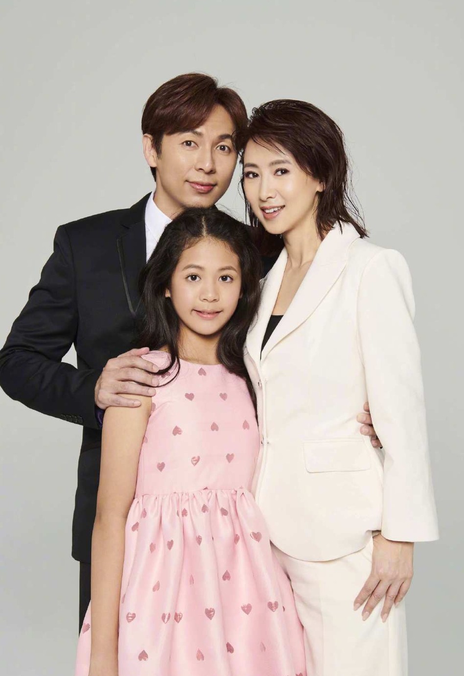 翁虹一家三口颜值超高其乐融融,小女儿身穿粉色连衣裙乖巧呆萌。