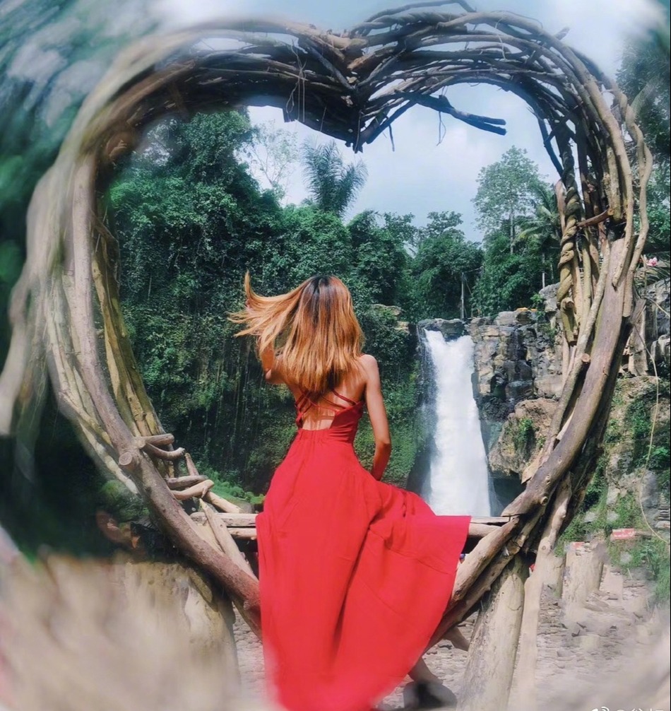 翁虹晒照。
