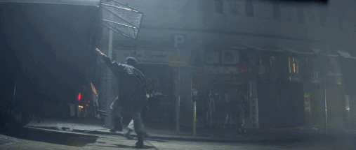 杜琪峰式的站位,灰蓝色的底调。