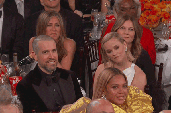 皮特在金球奖颁奖礼上领奖时,底下明星们的表情