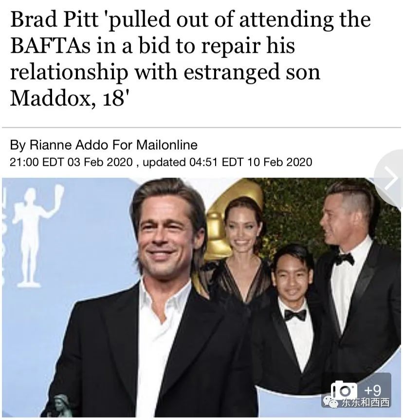 今年2月,他获得英国电影和电视艺术学院最佳男配角奖,却缺席颁奖,因为他的大儿子马多克斯突然愿意跟他见面聊天。 朱莉领养的这个儿子一直对他颇有敌意,如今伸出橄榄枝,于是皮特在最后一刻取消了飞往伦敦的机票,决定去陪儿子↓↓