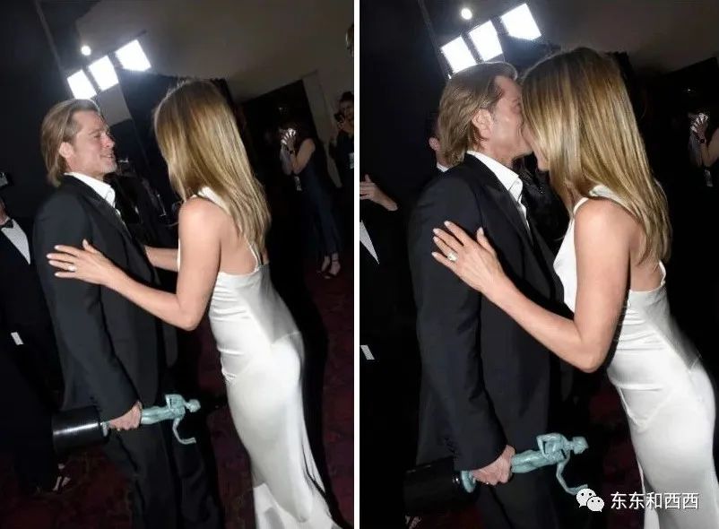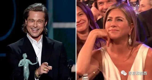 也是在今年1月的美国演员工会奖颁奖礼上,皮特不光遇到塞隆,还碰见了前妻安妮斯顿,两人双双获奖↓↓