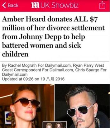 但因为艾梅伯一直声称自己告德普家暴,不是为了钱,只是为了想离婚,最后在舆论压力下把近700万美金捐出去了。