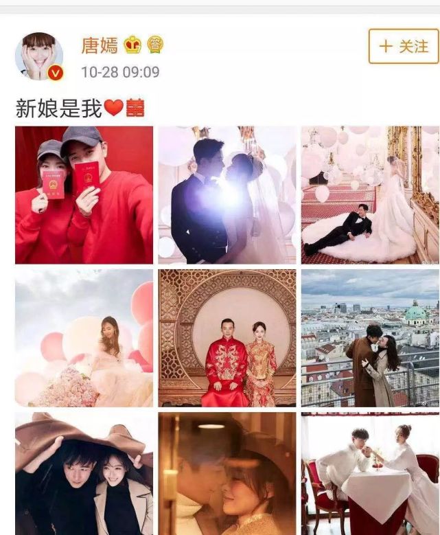 两人顺其自然的在2018年10月28日09点09分,官宣结婚的消息,唐嫣说“新娘是我”。