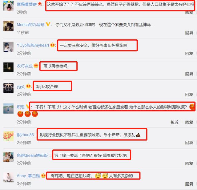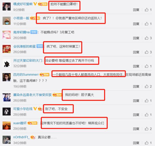 即使如此,但依旧引来网友的大批不满,毕竟拍戏是聚集性活动,危险系数比较高,再加上不能戴口罩的因素,大部分网友在评论区都是持反对意见的,质疑声四起,表示“不能再等等”?