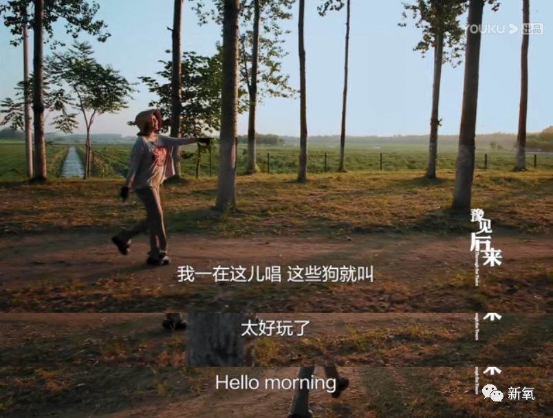 比如说,大清早在田野间吊嗓子的时候,有只狗狗跟着她的声音“汪汪”叫,她就笑着跟狗狗打招呼;