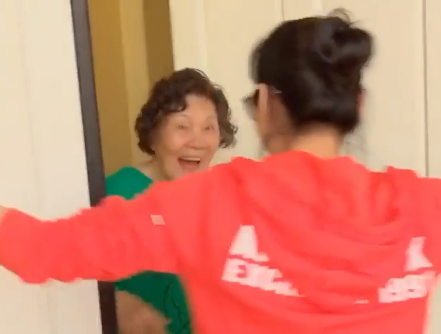 她表示很高兴再次在LA给祖母惊喜,因为他们自己也不知道什么时候能够去到祖母家,所以她并没有告诉老人他们要来。