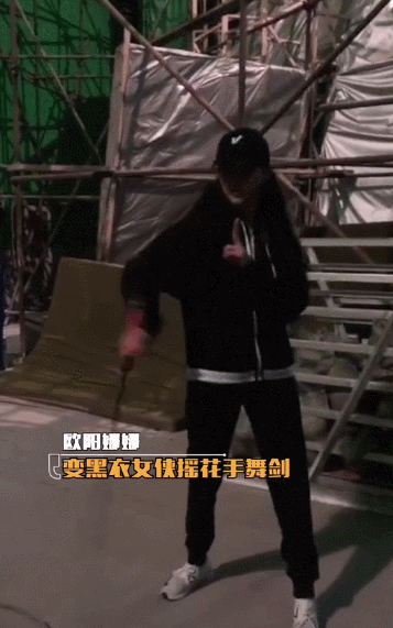 欧阳娜娜练习摇花手舞剑。