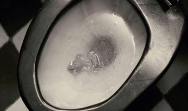 更要命的是,它在一些不重要的细节上又相当的写实。比如下面这个马桶里可疑的浑浊液体,还有那条无辜的死鱼,都真实的让人胃里直冒酸水。