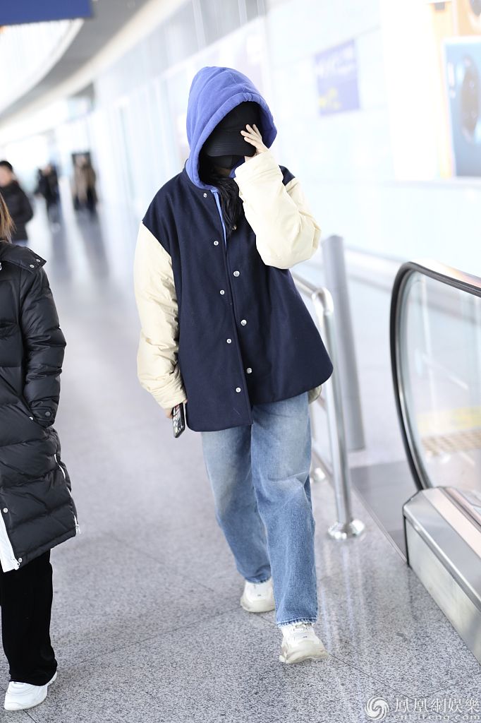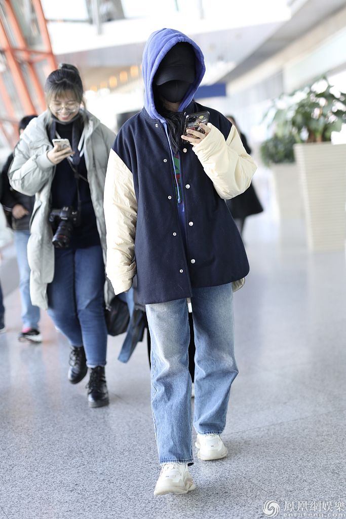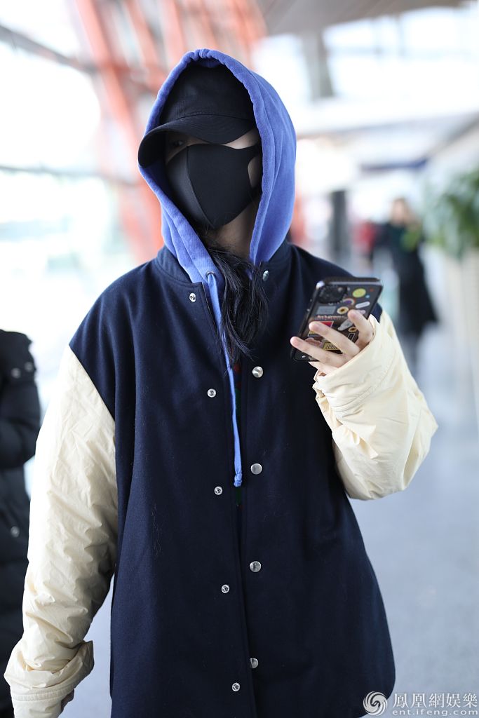 2019年12月14日,北京,章若楠现身机场。她口罩遮面只露眼变“蒙面少女”,一路低头玩手机很低