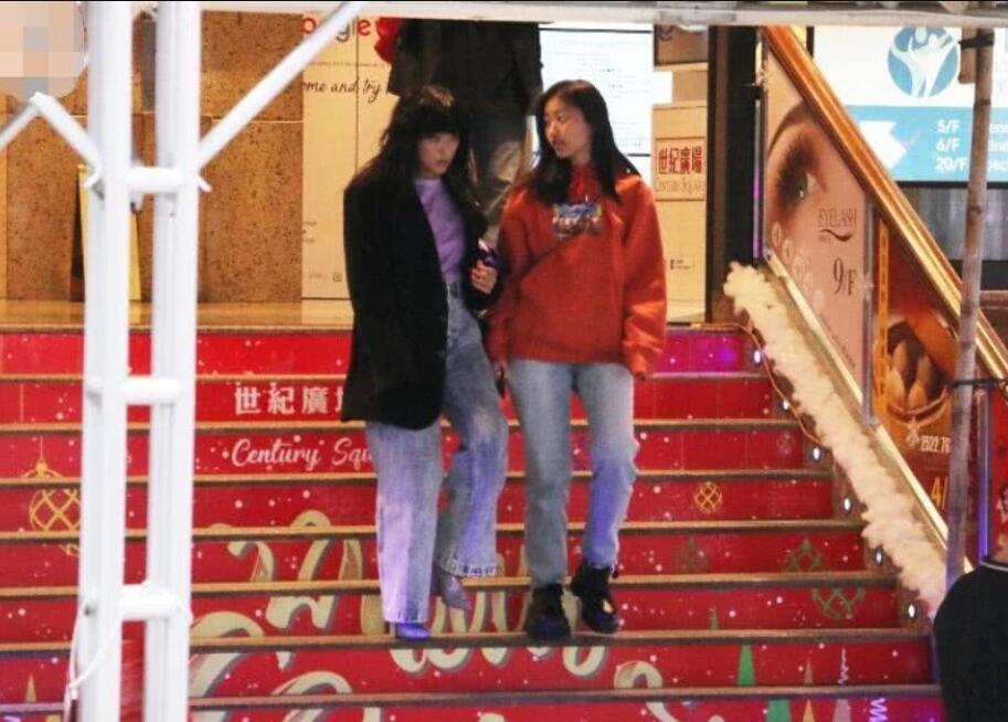 走在路上的两母女从背影看更加像姐妹,徐濠萦和女儿都留着披肩长发,并且都穿浅色牛仔裤,看来陈康提的衣品与妈妈的风格还挺类似。