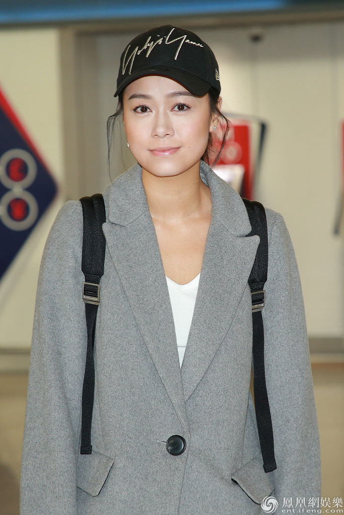 2019年12月14日,黄心颖戴黑色帽子,身穿灰色大衣,现身机