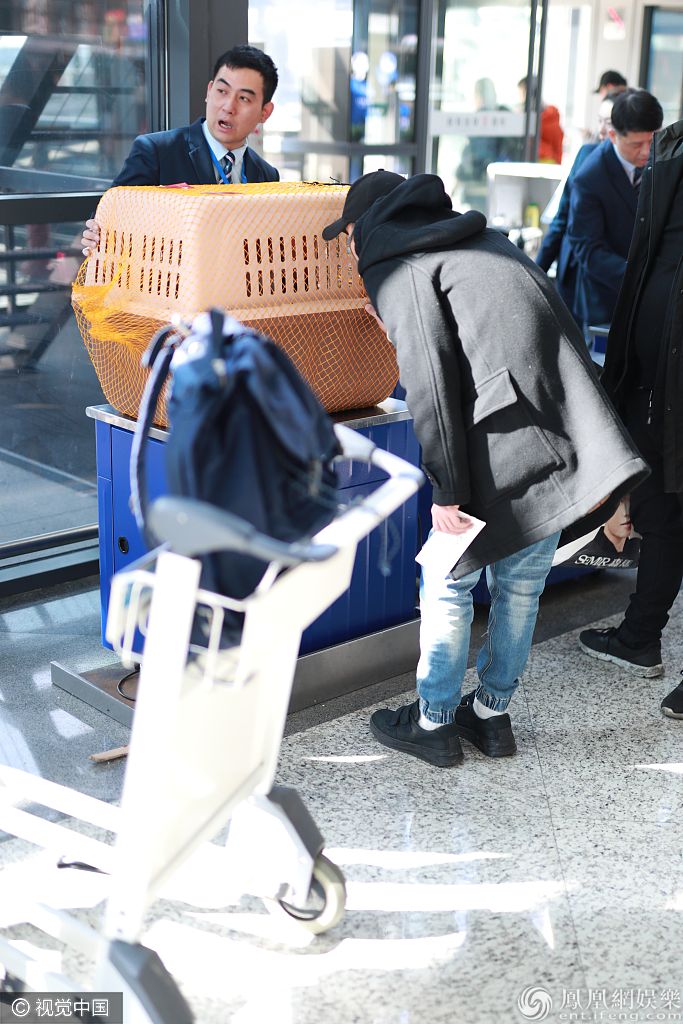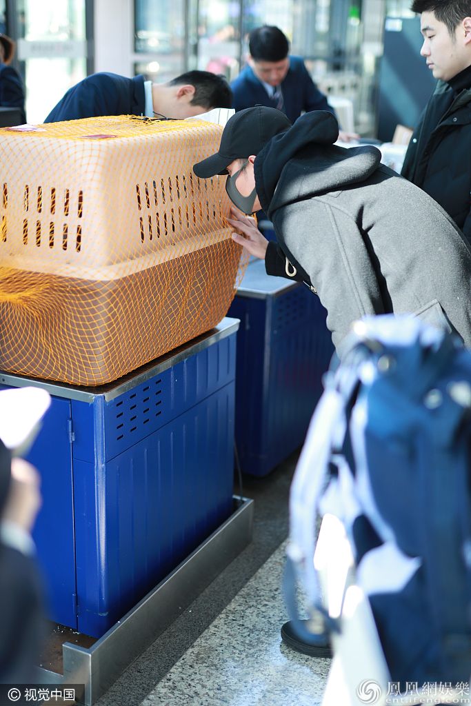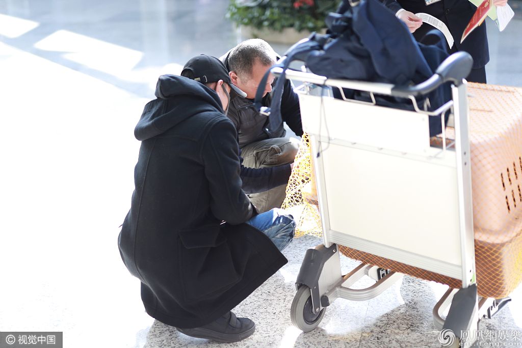 他带宠物狗现身机场,下蹲看狗狗满脸宠溺,口罩遮面装扮低调品味在线。 图片来源:12月boy/视觉中国