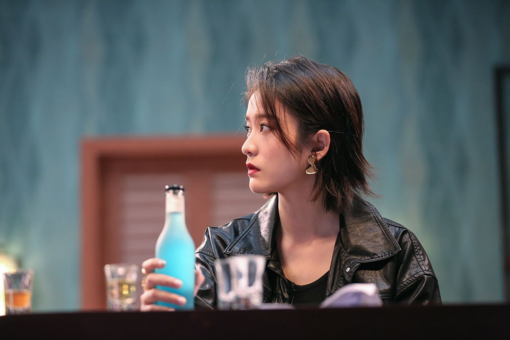 随着迎迎破门而入的一声“老板,一杯长岛冰茶”,而后坐在吧台后单手抹泪,烈酒下肚后大声哭诉遇人不淑,作品气氛陡然变化。面对陌生男子的搭讪,泪水挂在眼睫的张雪迎半侧着脸,一双有故事的眼睛特写十分抓人,将女孩的伤心与倔强拿捏得恰到好处。