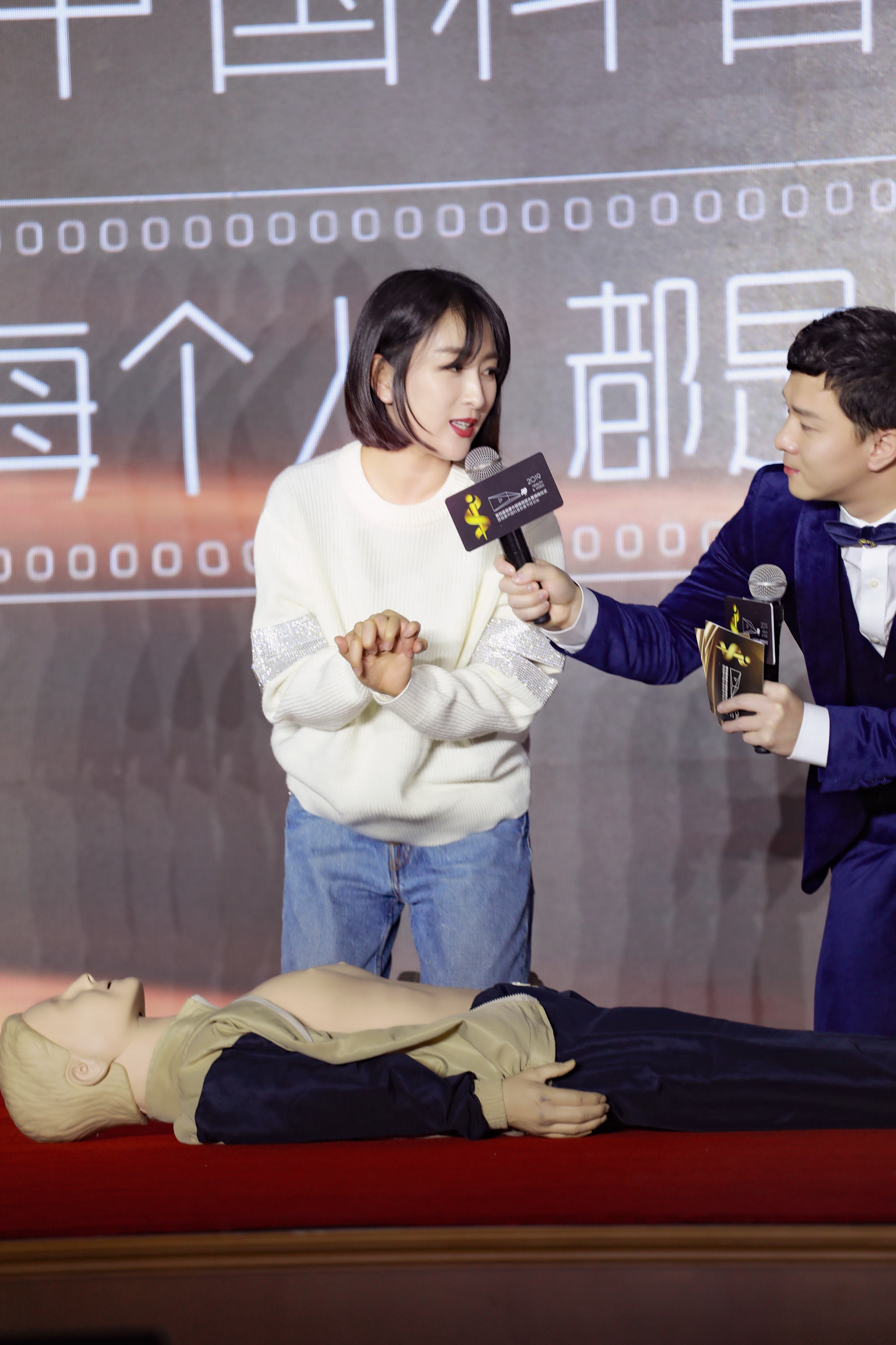 现场播放了由马苏和贾大成医生合作的急救系列视频之心肺复苏篇。主持人问到做这个急救科普视频的初衷时,马苏回答道:“因为这是非常有意义的一件事。随着身边家人的年纪渐渐大了,越来越关注健康急救类的知识。”马苏表示有机会可以拍急救公益宣传片,把正确的急救知识传播出去。让更多人了解急救知识,使每个人都成为急救天使。