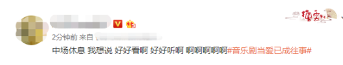明明还是中场休息时间,就有观众掏出手机忍不住在微博发文安利,数数有多少个“啊”, 就知道观众的心情有多激动。