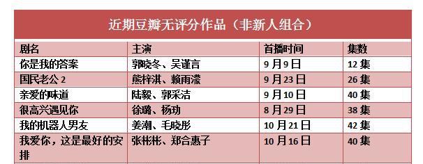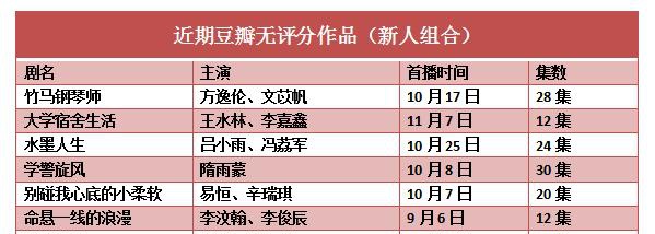 在今年度豆瓣收入的近200部开播的国产网剧中,有近100部网剧至今没有露出豆瓣评分。其中,值得注意的是,甚至部分有粉丝、观众基础的“成熟”演员,他们的作品也可能是消无声息地完结。