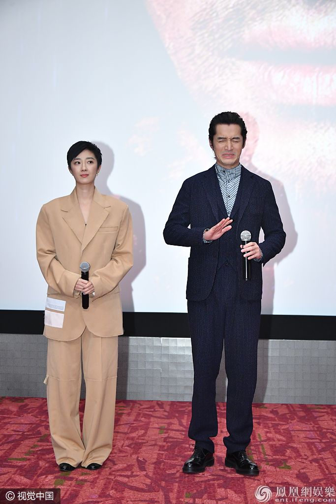 胡歌、桂纶镁同穿西装配一脸。 图片来源:行云/视觉中国
