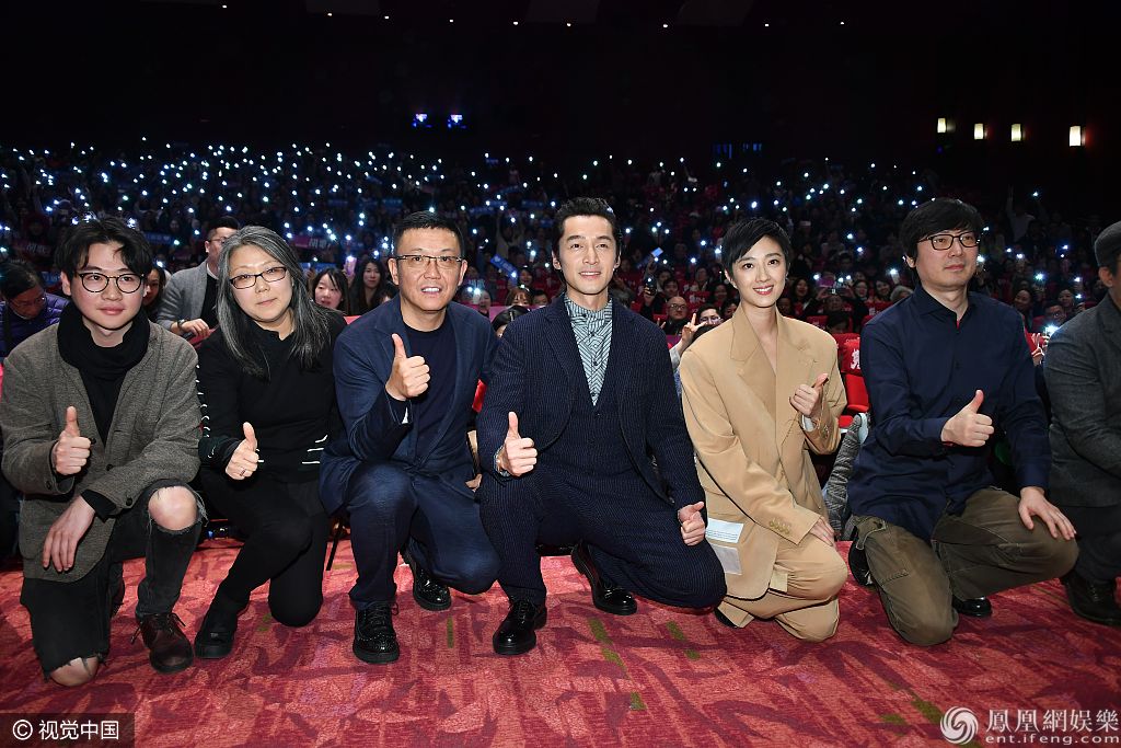桂纶镁,胡歌,刁亦男等主创和影迷合影。 图片来源:YLJ/视觉中国