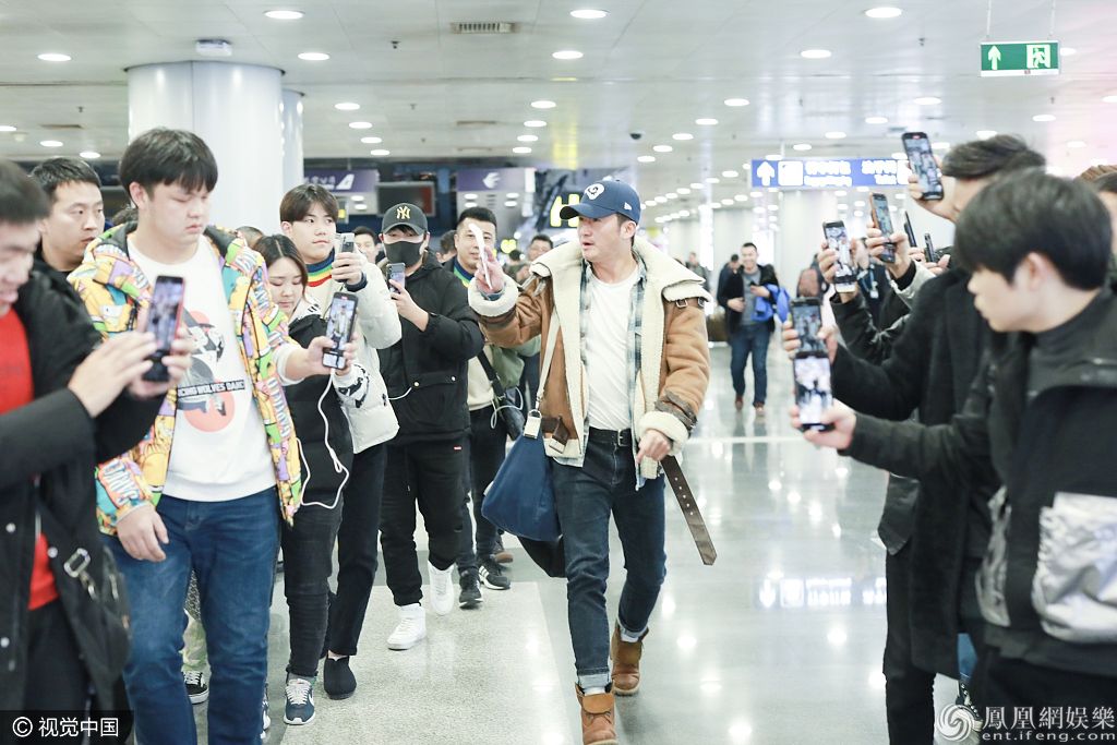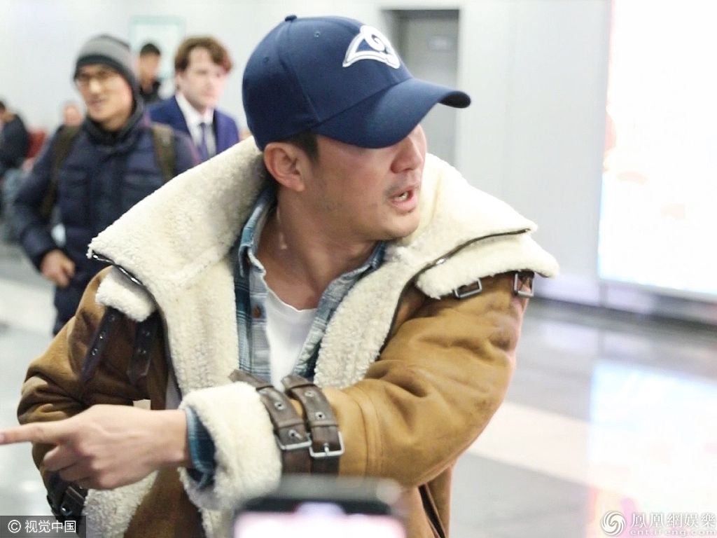 2019年12月5日,北京, 45岁男神吴京现身机场。他头戴棒球帽身穿麂皮外套扮潮, 机场遭到围拍大步疾行突围而出。 有代拍差点撞到小孩,吴京指着差点撞到小孩的代拍说:“你们看看那有小孩,看见没有?你们在这样我……你们要这样你们真不好 要是把孩子撞到怎么办”。 图片来源:签约供稿人/视觉