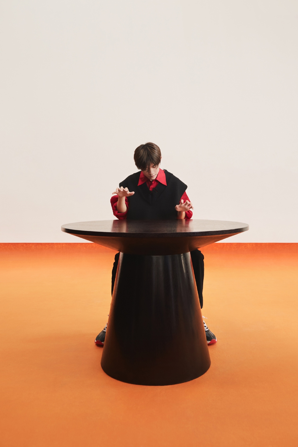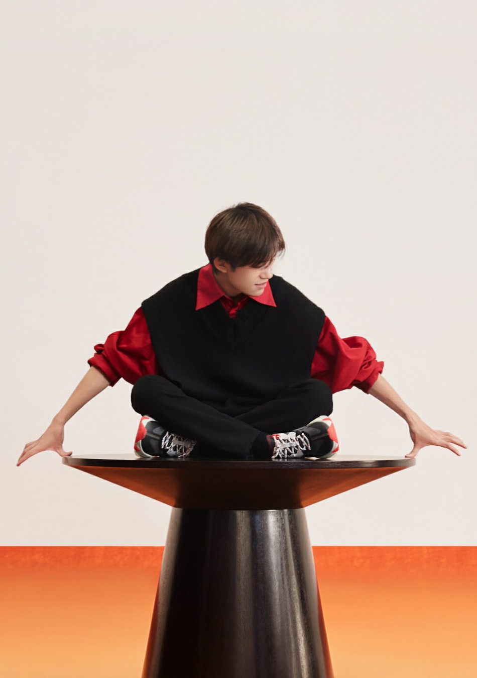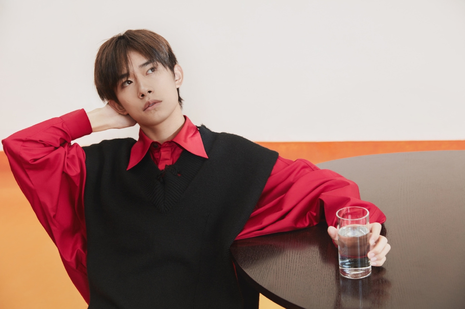 照片中,他穿着黑色毛线衣内搭应援色衬衫实力宠粉,简约风格奇思妙想展少年意气。