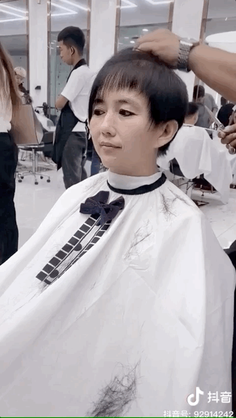 有留了30多年长发,终于借刘安俊之手尝试了短发造型的漂亮女孩;